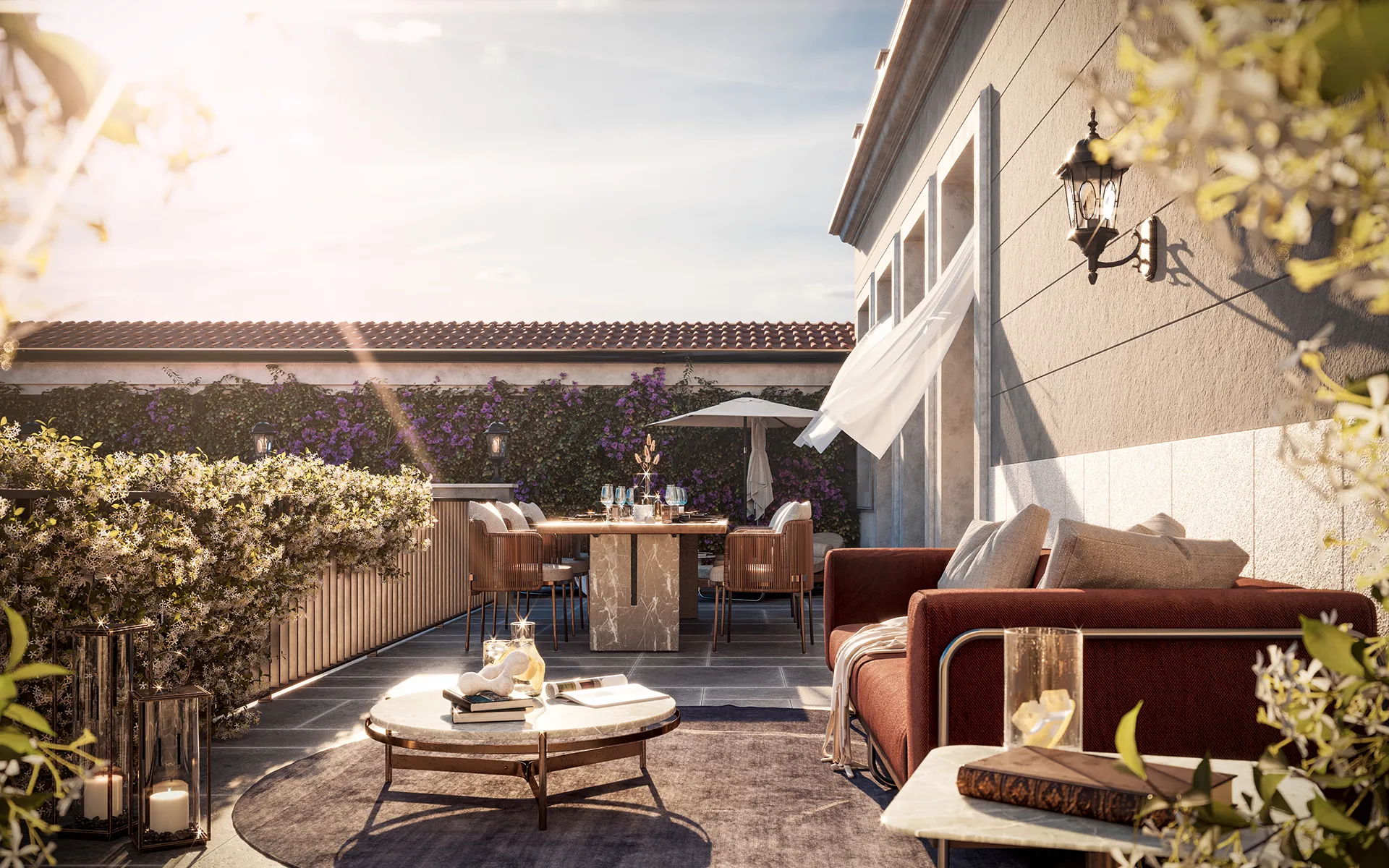 Vera e propria estensione della casa en plein air, l'attico di Residenza Scala proietta in uno spazio dal fascino insuperato tutta la bellezza di un centro storico ricco di arte e cultura. Un luogo magico di relax e condivisione.